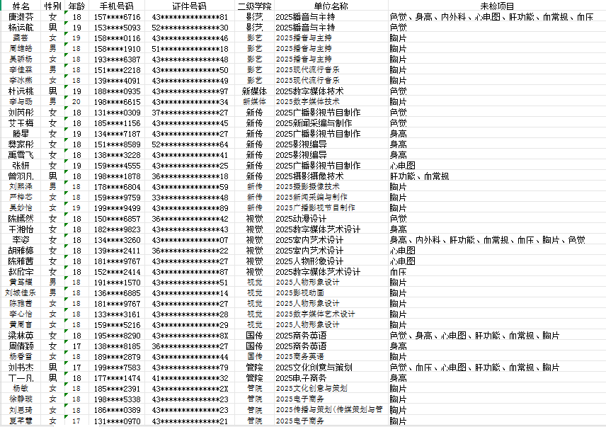 未完成体检项目(见附件)及体检异常的2025级学生(详见传媒辅导员之家群文件)